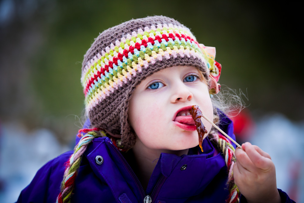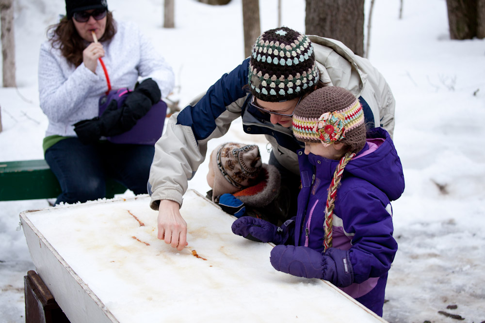 No more than 2 minutes later, we watched a man pour warm maple syrup onto a bed of snow, which nearly instantly makes taffy. We proceeded to roll the taffy up onto a popsicle stick. And yes, it was as good as it sounds. We donated extra $ after Boots decide to double dip… but seriously, who could blame him 😉